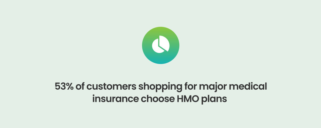 HMO plans are among the most popular insurance plan types with 53% of consumers electing HMO plans while shopping for health insurance.
